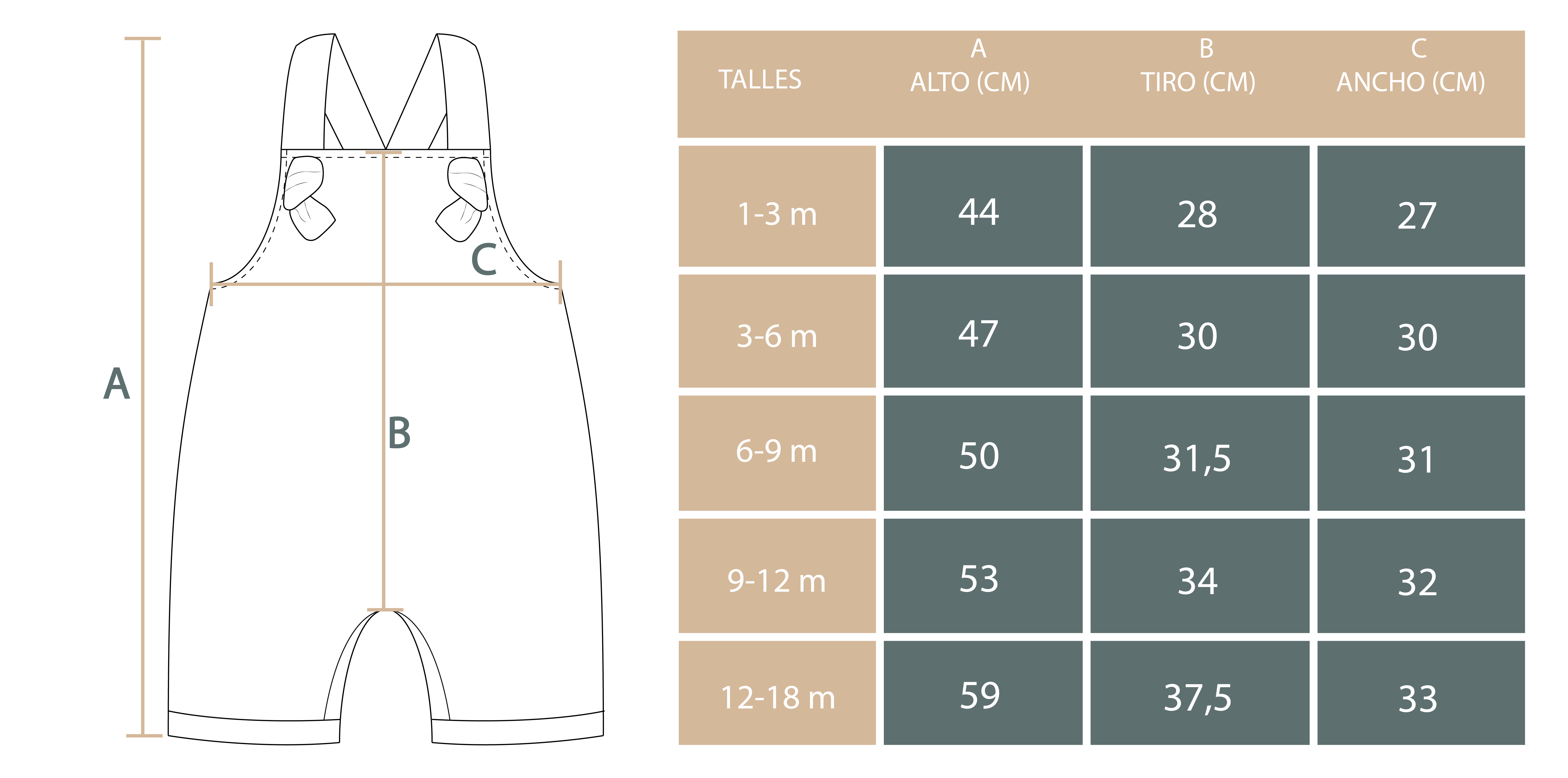 La edad indicada para cada talle está basada en tablas de talles standard. Sugerimos elegir el talle considerando la tabla de medidas que se muestra a continuación: